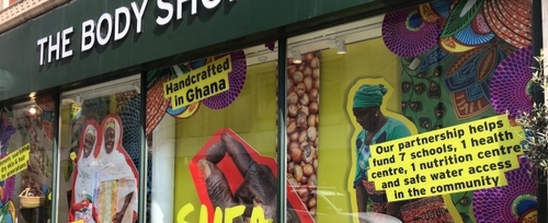 - The women behind the production of the Shea were the main focus in the window reinforcing The Body Shop’s ethical credentials